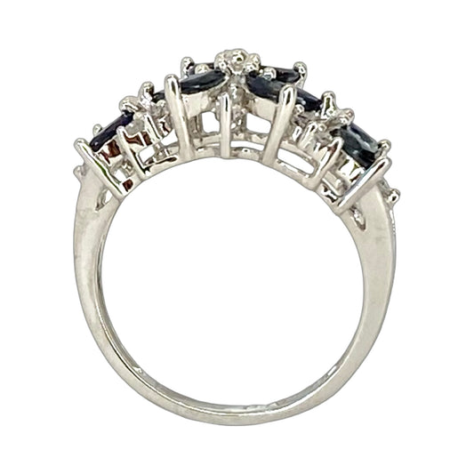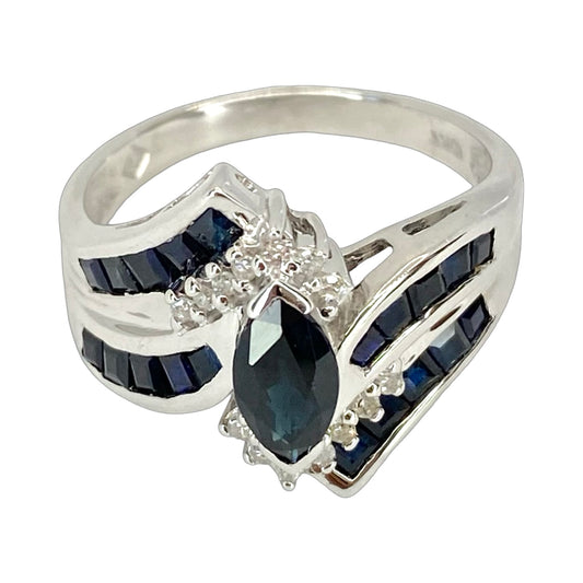 10K White Gold Marquise Blue Sapphires and Diamond Ring