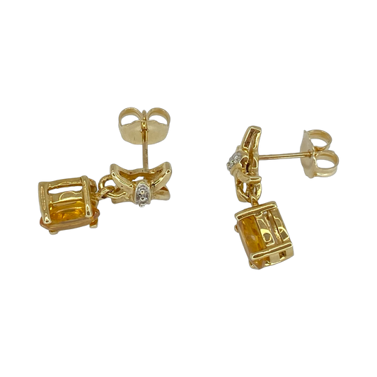 10K Yellow Gold Oval Citrine "X" Drop Earrings