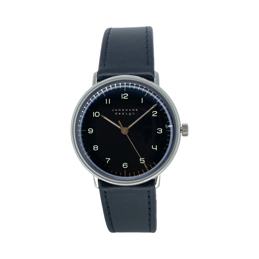 Junghans Max Bill Handaufzug 34mm Black Dial on Black Leather Strap 27/3702.02