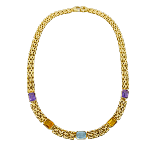 Estate Jewelry 14K Yellow Gold Multi Gemstone Necklace and Bracelet Set