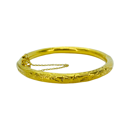 Estate Jewelry 24K Yellow Gold Bangle Bracelet with Red and Green Enamel