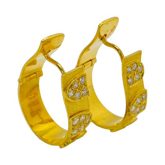 Estate Jewelry 18K Yellow Gold Hoop Earrings with Diamonds
