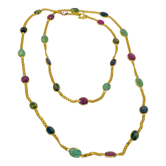 Estate Jewelry 18-22K Yellow Gold Multi Gemstone Necklace