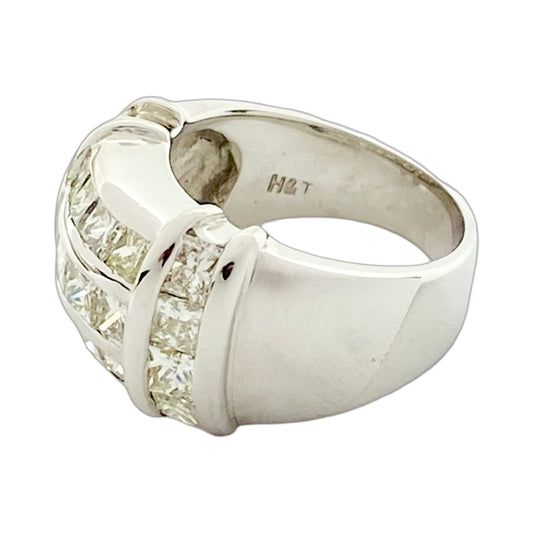 Estate Jewelry 18K White Gold Princess Cut Diamond Cocktail Ring 3.22 Carats