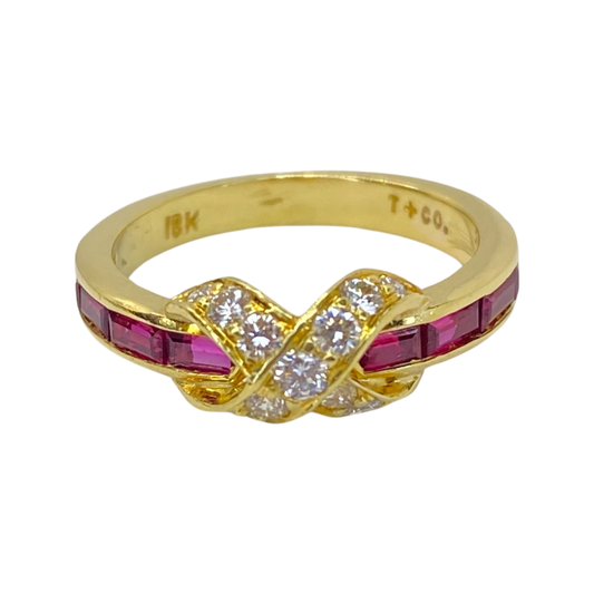 Estate Jewelry 18K Yellow Gold Tiffany & Co "X" Diamond and Ruby Ring