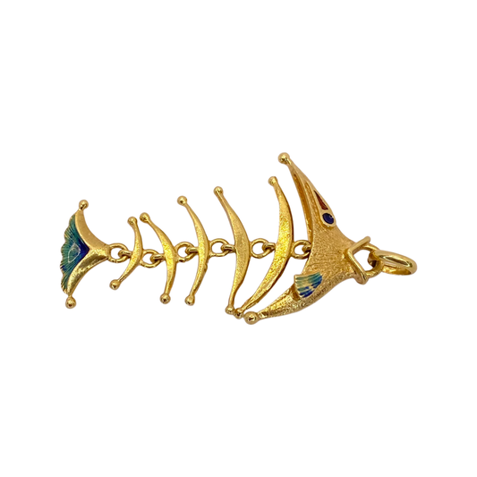 Estate Jewelry 18K Yellow Gold Fishbone Pendant