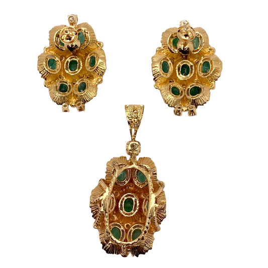 Estate Jewelry 14K Yellow Gold Emerald Cluster Earrings and Pendant Set