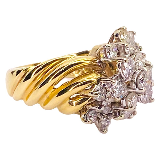 Estate Jewelry 18K Yellow Gold Cluster Diamond Ring