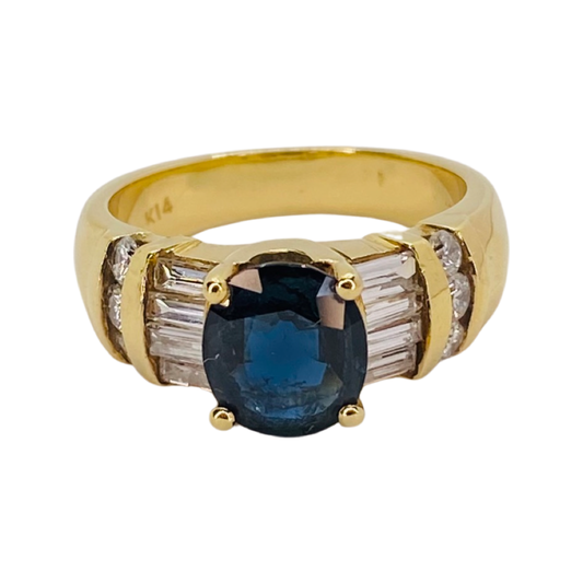 Estate Jewelry 14K Yellow Gold Oval Blue Sapphire Ring