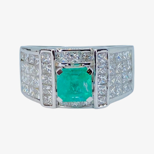 Estate Jewelry 14K White Gold Emerald and Diamond Ring