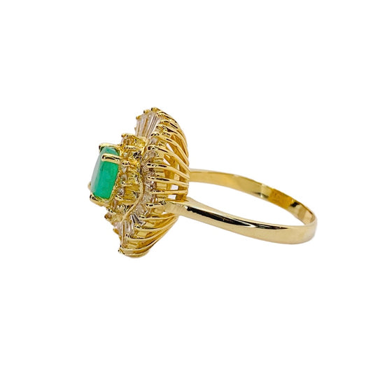 Estate Jewelry 14K Yellow Gold Emerald and Diamond Ring