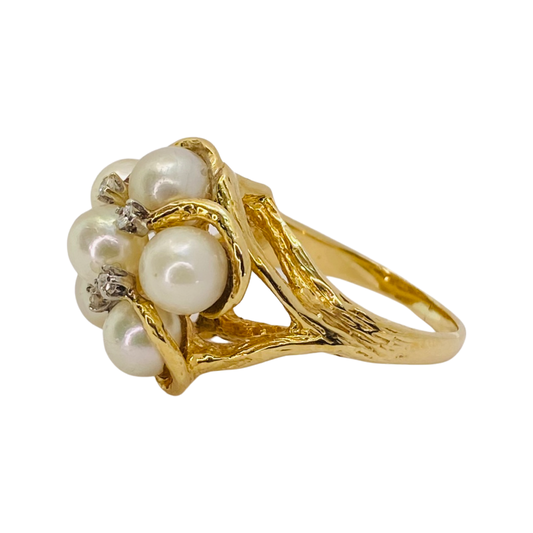 Estate Jewelry 14K Yellow Gold Pearl & Diamond Ring