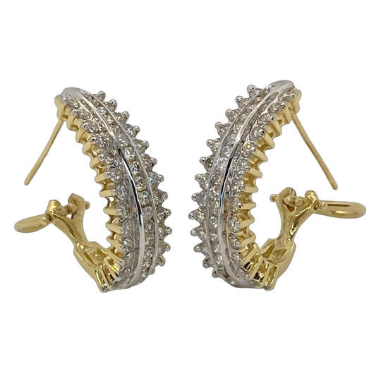 Estate Jewelry 14K white/Yellow Gold J Hoop Earrings with 2.00 Carats Diamonds