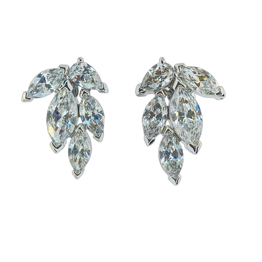 Estate Jewelry Silver Marquise Swarovski Stud Earring Clusters