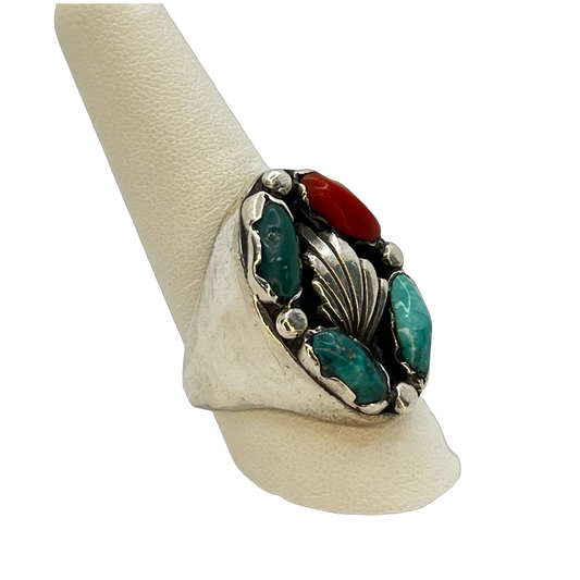 Estate Jewelry 925 Silver Turqouise and Coral Ring