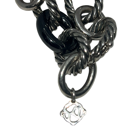 Estate Jewelry David Yurman 925 Silver and Black Ceramic Large Oval Link Bracelet