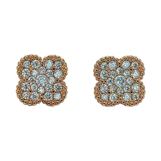 Estate Jewelry Rose Gold Tone Crystal Stud Clover Earrings