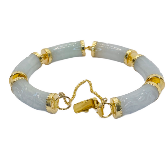 Estate Jewelry 14K Yellow Gold Jade Link Bracelet
