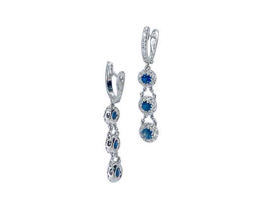 18K White Gold Blue Sapphire and Diamond Drop Earrings