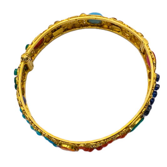 Estate Jewelry 22K Gold Multi Gemstone Bangle Bracelet