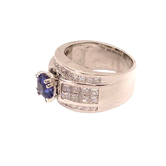 Estate Jewelry 18K White Gold Blue Sapphire Ring