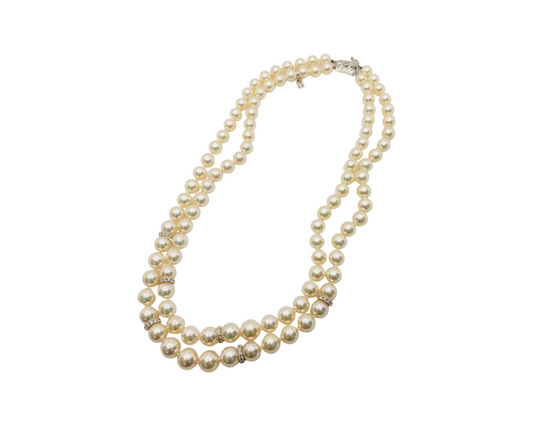 18K White Gold MIKIMOTO Akoya Graduated Pearl Double Strand Necklace