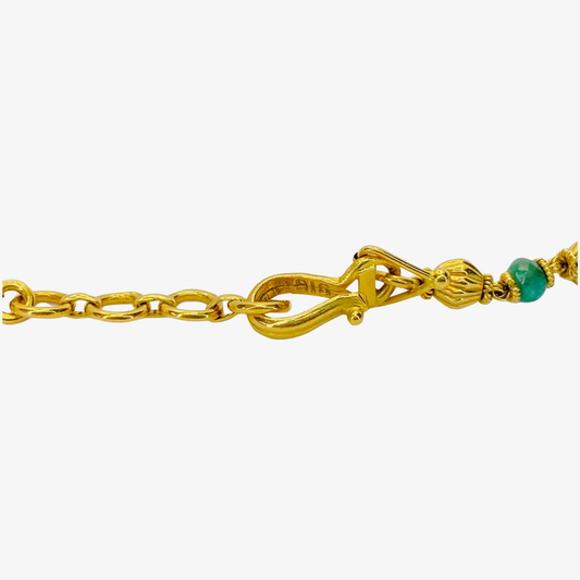 Estate Jewelry 22K Yellow Gold Faceted Round Emerald and Ruby Necklace