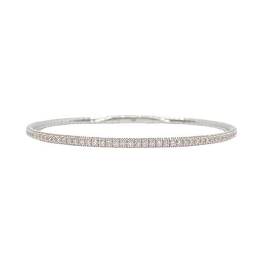 14K White Gold 1.00CT Tennis Bangle Flexible Bracelet