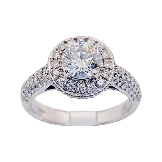 14K White Gold Round Diamond Halo Ring