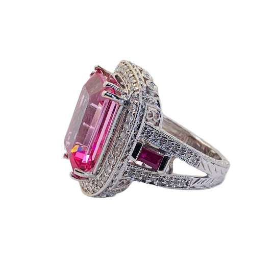 14K White Gold Pink Topaz Cocktail Ring