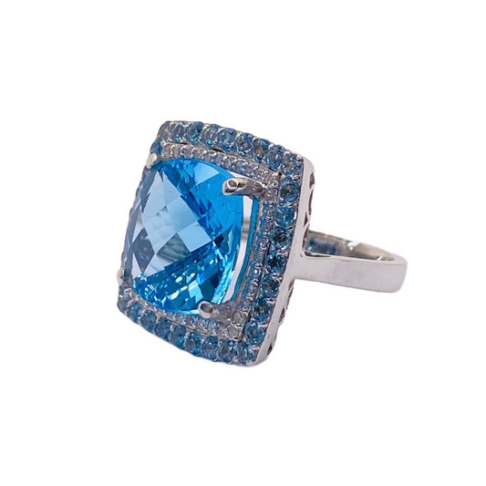 14K White Gold Blue Topaz Ring