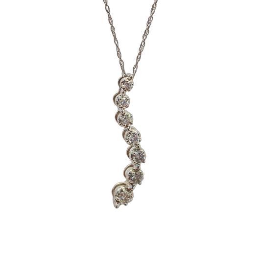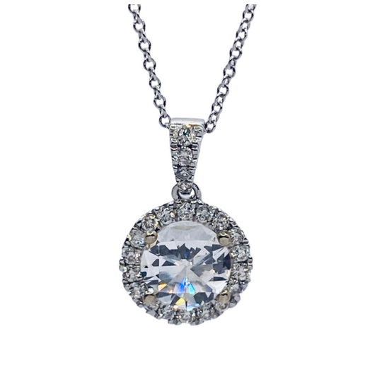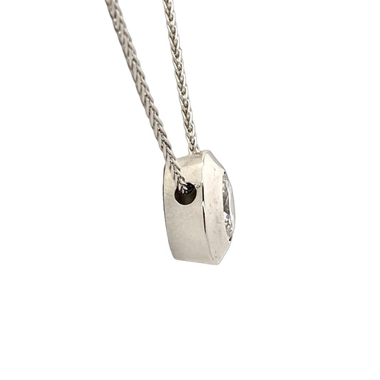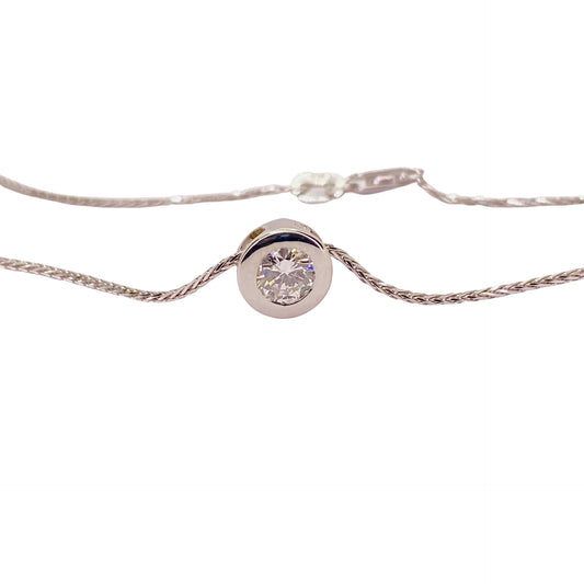 14K White Gold Bezel Set Solitaire Diamond Pendant Necklace