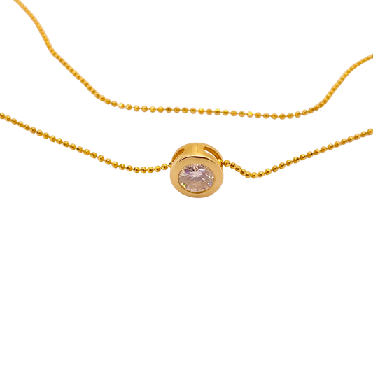 14K Yellow Gold Bezel Set Solitaire Diamond Pendant Necklace