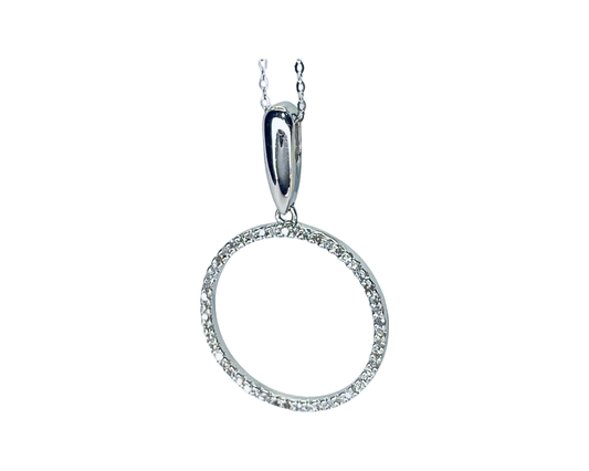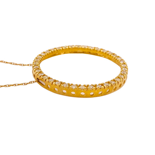 14K Yellow Gold Circle Diamond Pendant Necklace