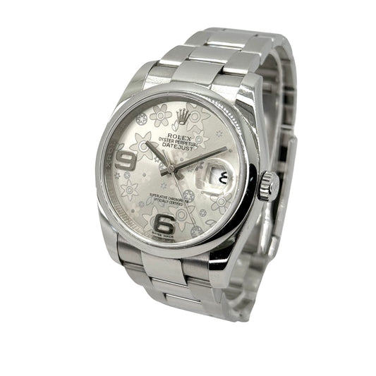Rolex Datejust 36 Silver Floral Dial Oystersteel Bracelet M116200-0071