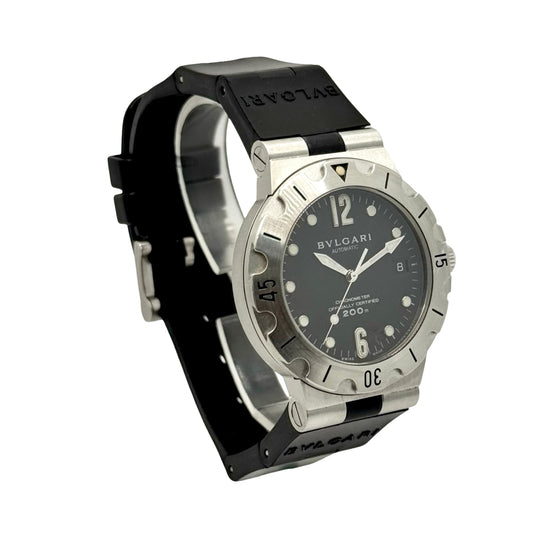 Bulgari Diagono Scuba 200M Automatic Chronometer Black Dial Black Rubber Strap SD 38 S