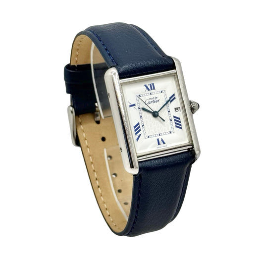 Cartier Must De Cartier Tank Mid Size 925 Silver White Dial Leather Strap Ref.2414