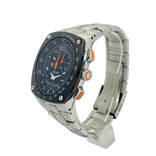 Seiko Sportura Kinetic Chronograph Black Dial Stainless Steel Bracelet SNL015
