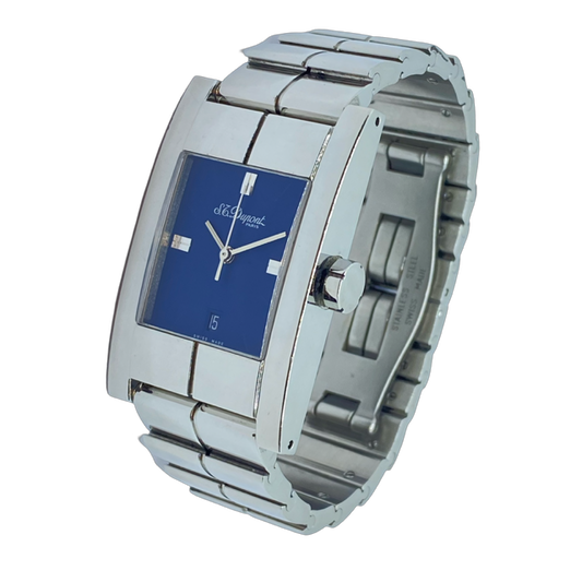 S.T. Dupont Geometrie Blue Date Paris Quartz Watch Stainless Steel Bracelet