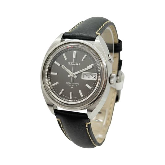Seiko Bell-Matic Alarm Day Date Steel Case Black Leather 4006-7000 C.1969