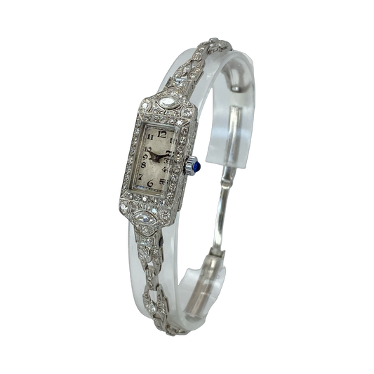 Vintage Ladies Platinum and 3.00 Carats Diamond Art Deco Manual Wind Watch