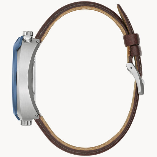 Bulova Parking Meter Silver-Tone Dial Leather Strap 98B390
