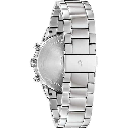 Bulova Mens Quartz Chronograph Black Dial Stainless Steel Bracelet 96A212