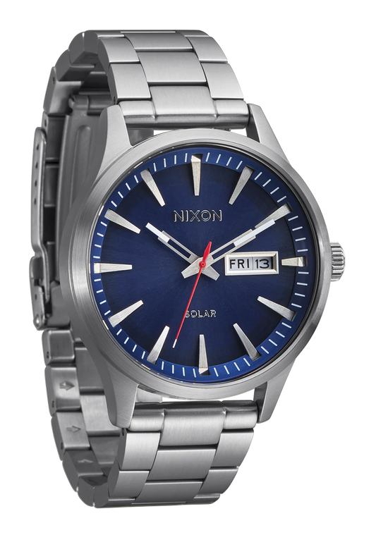 Nixon Sentry Solar Stainless Steel Watch Blue Sunray/Silver A1346 5091-00