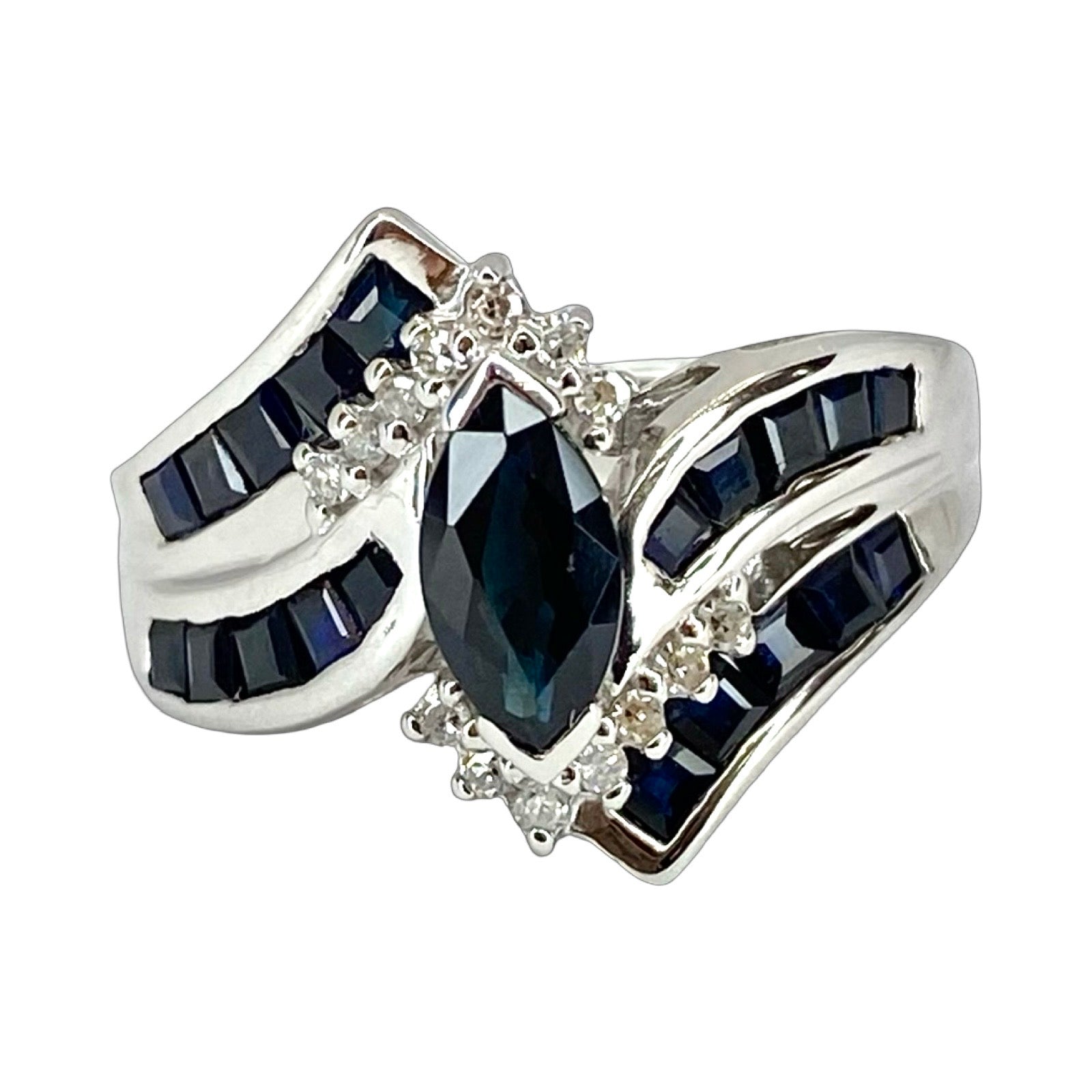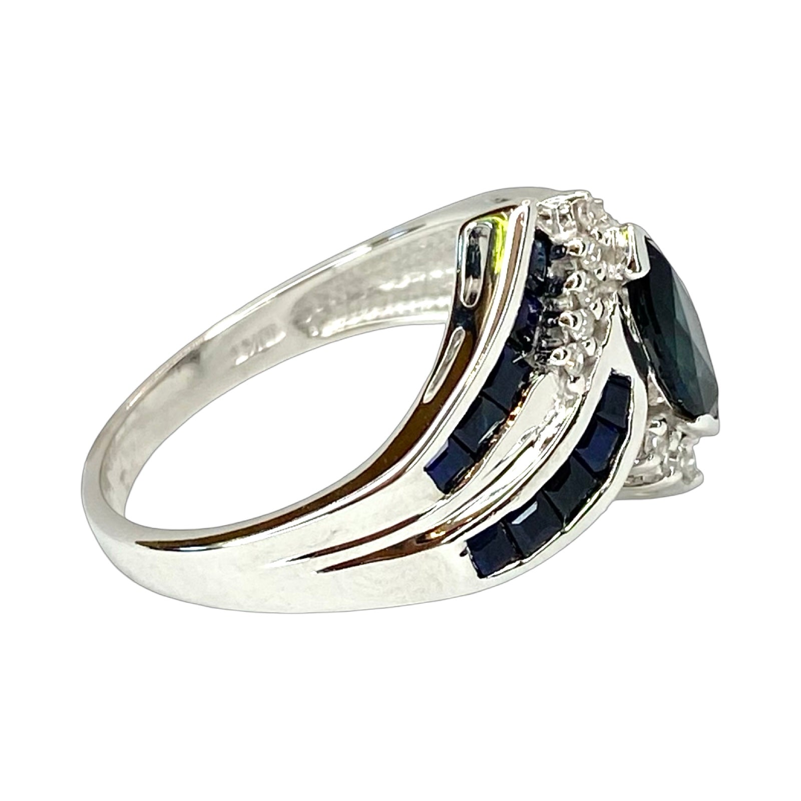 10K White Gold 1.00 Carat Blue Sapphire and 0.20 Carat Diamond Ring