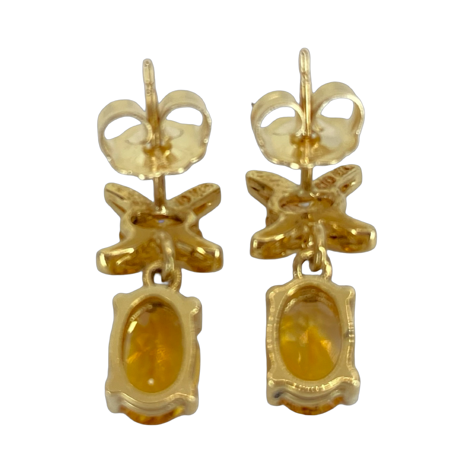 10K Yellow Gold Oval Citrine "X" Drop Earrings