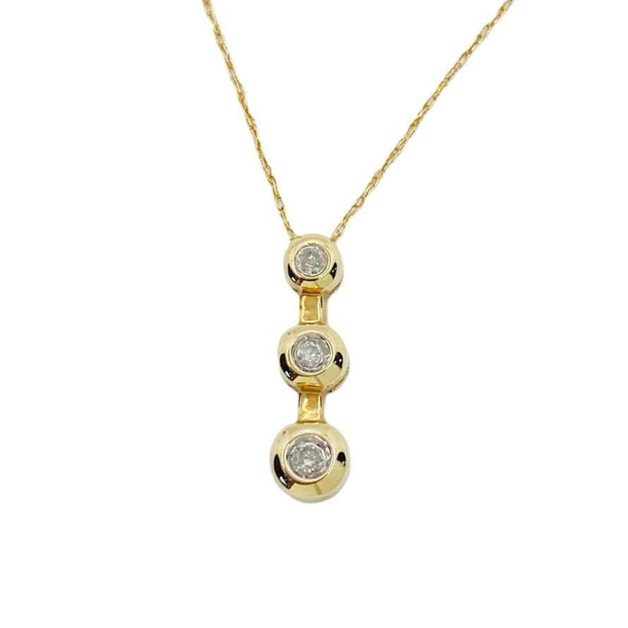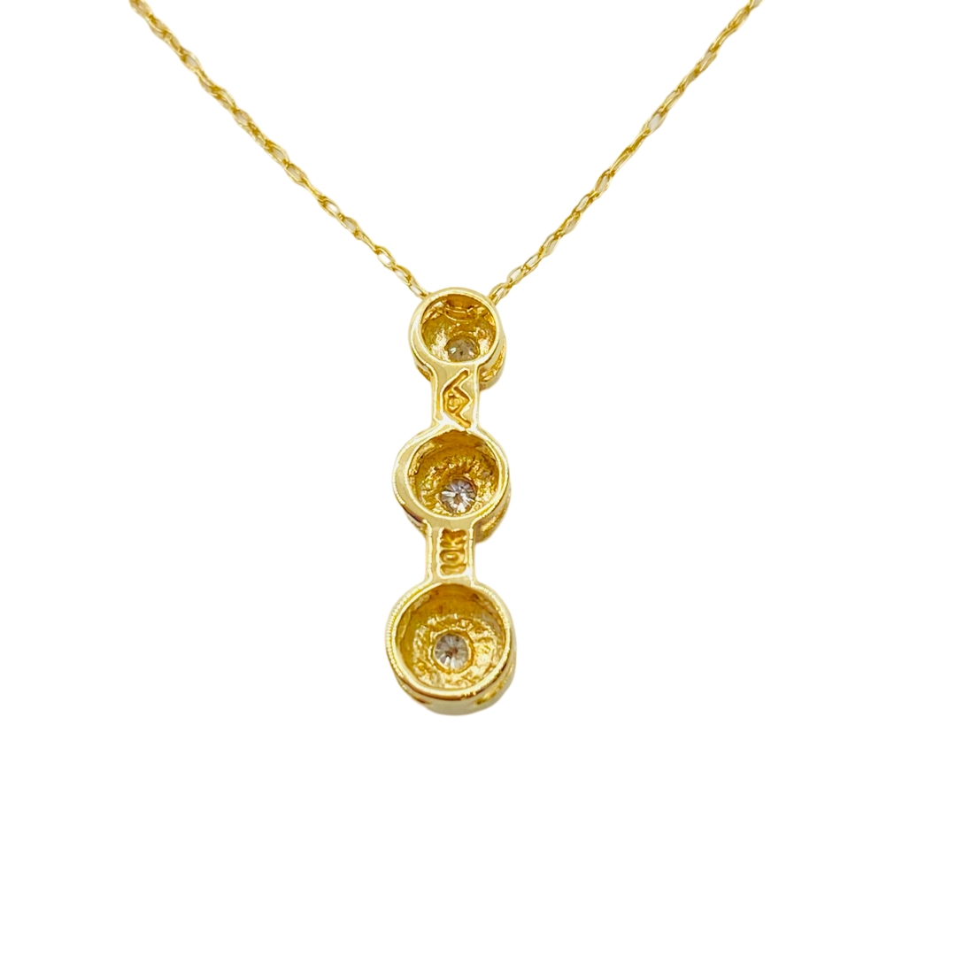 10K Yellow Gold 3 Stone Drop Pendant Necklace