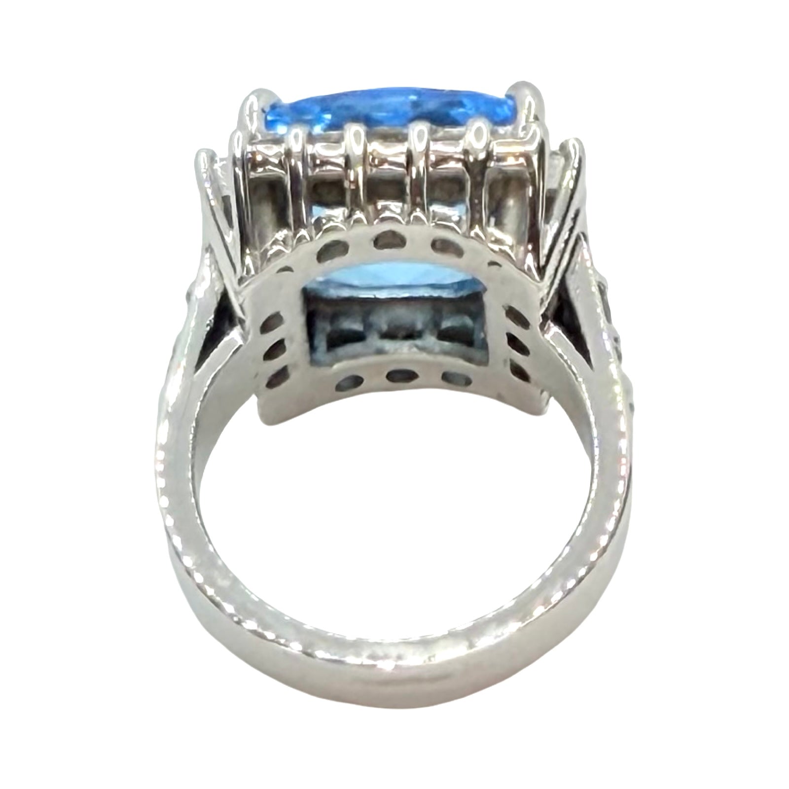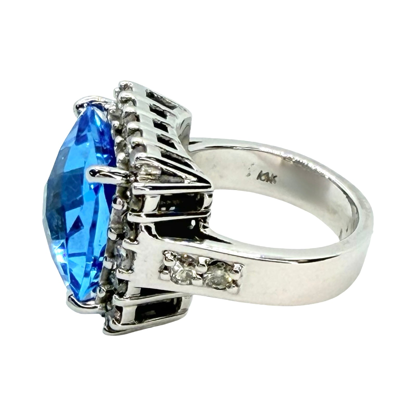 14K White Gold 12.00 Carat Blue Topaz Cocktail Ring 1.20 Carats Diamonds