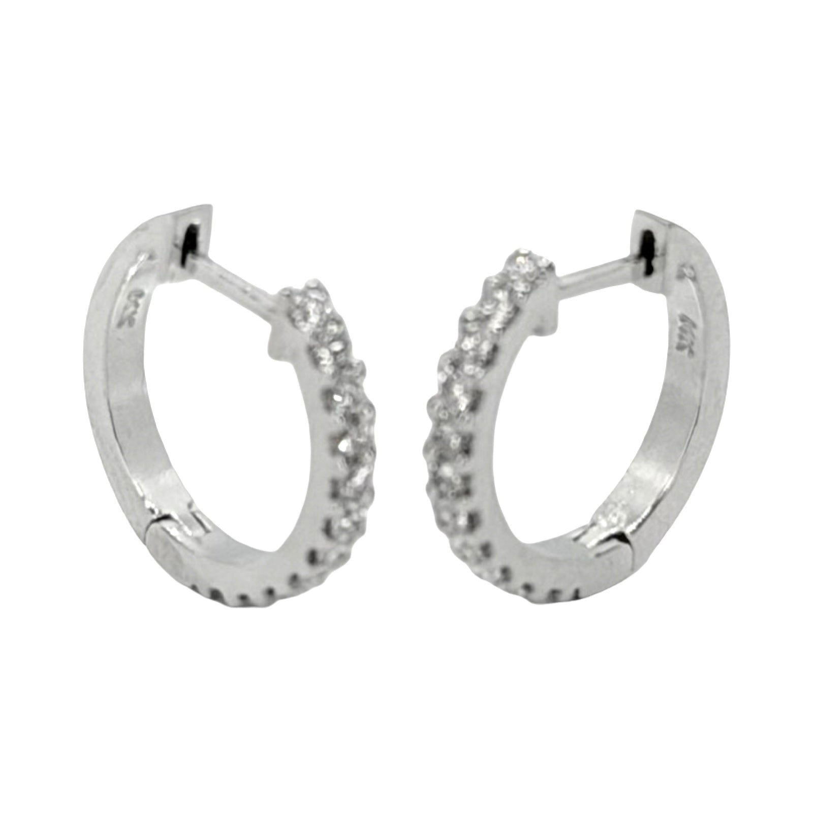 14K White Gold Diamond Huggie Hoop Diamond Earrings 0.45 Carat