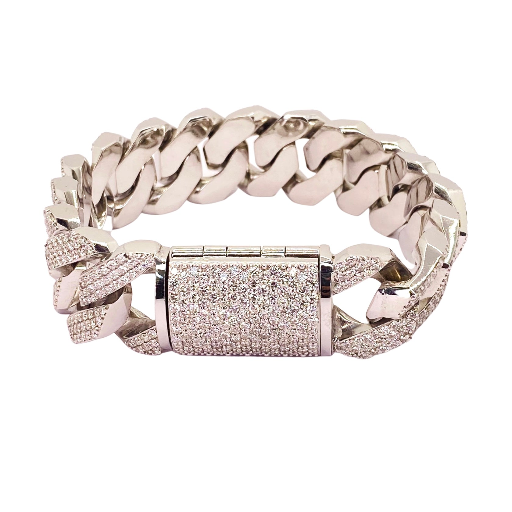 14K White Gold Mens 17.50 Carats Diamond Bracelet